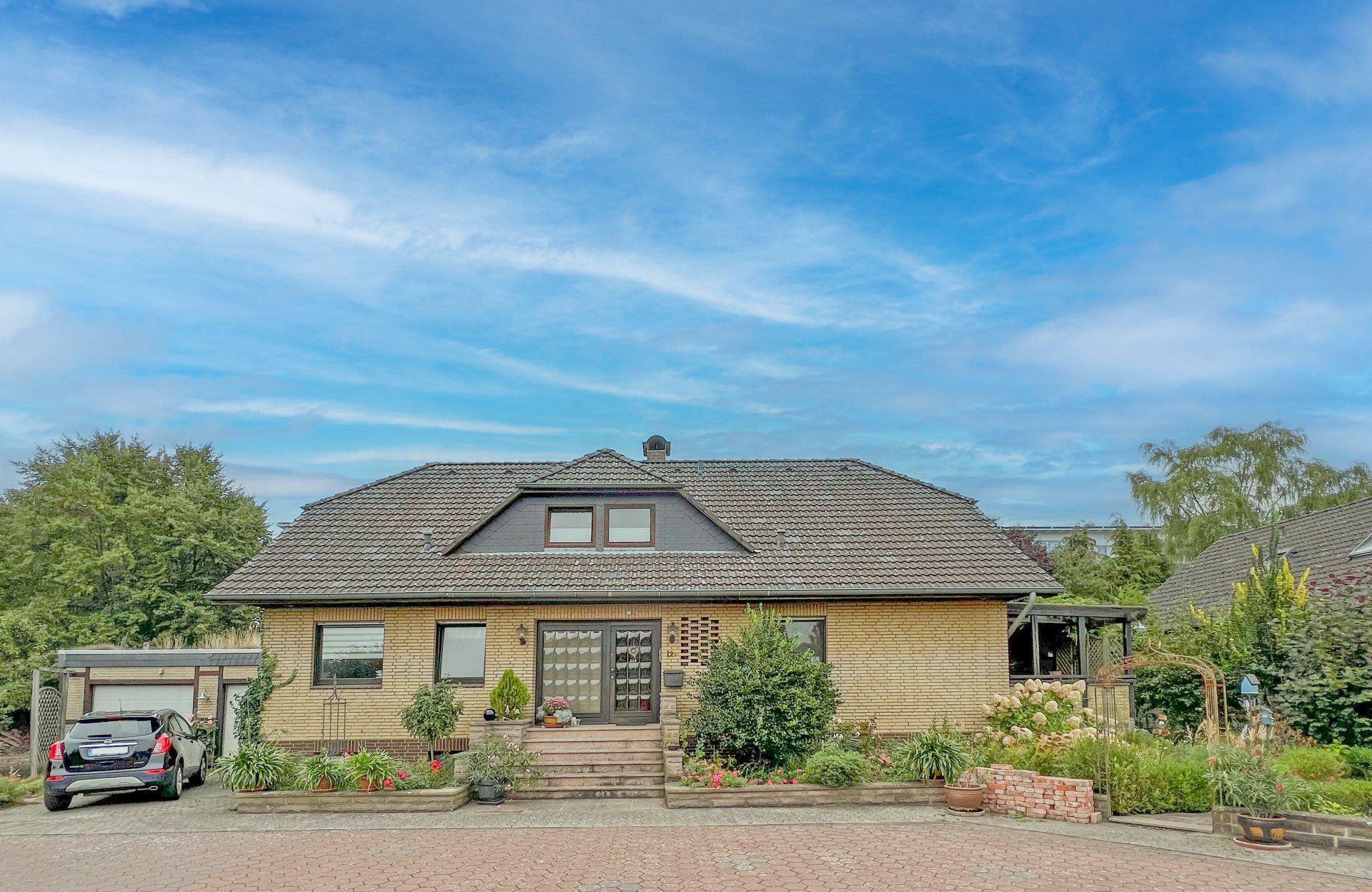 Doppelgarage, Terrasse, Garten,