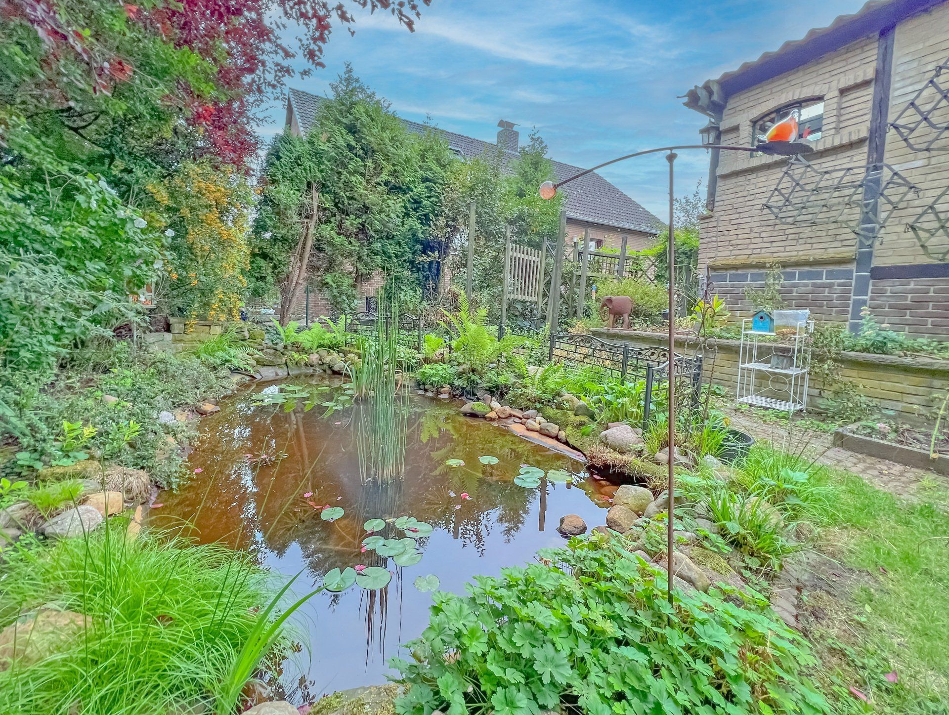 Brunnen, Gartenteich, Partyraum.