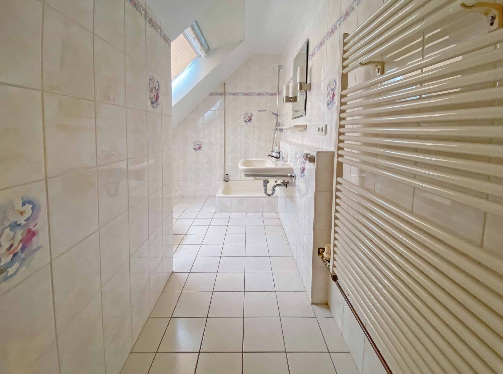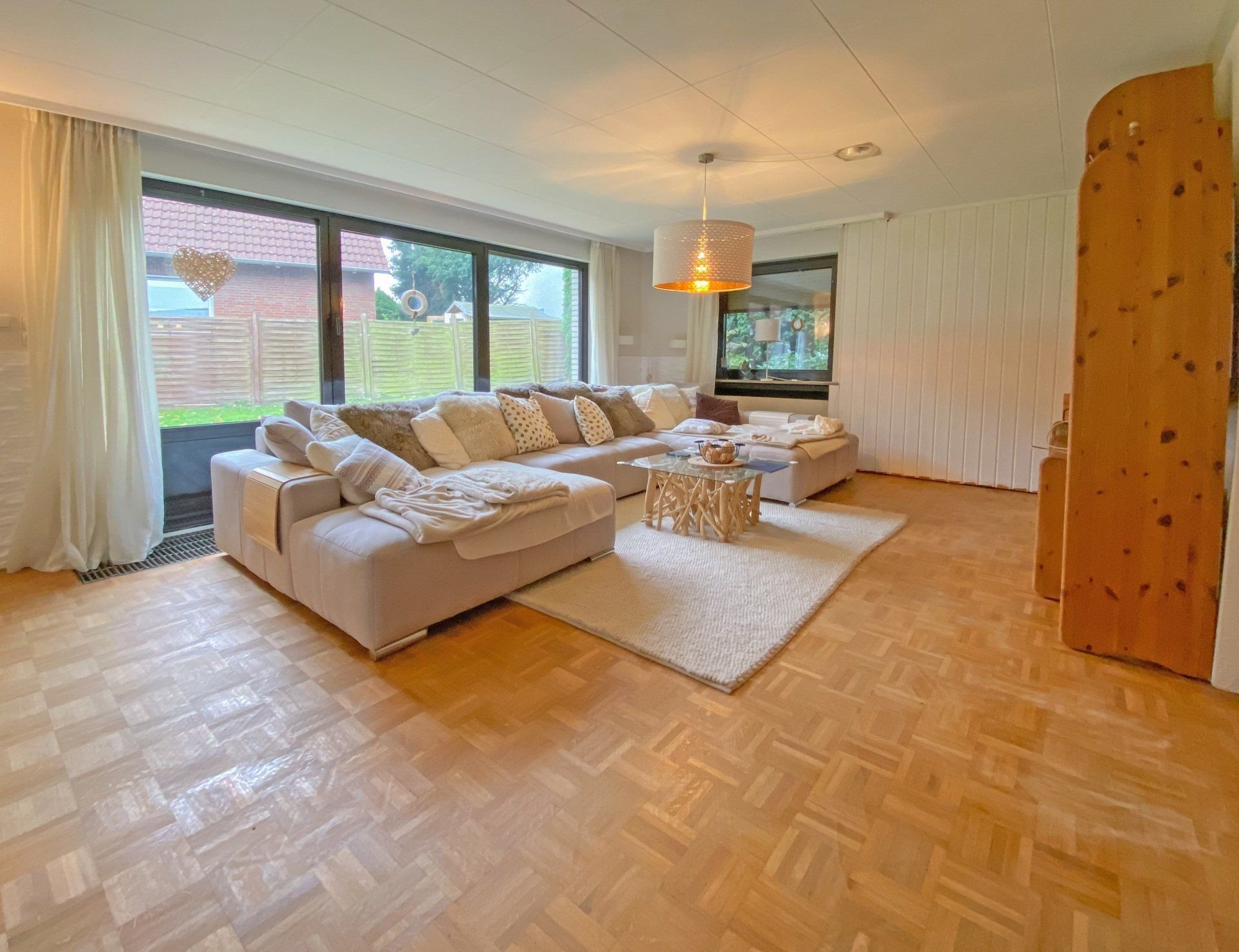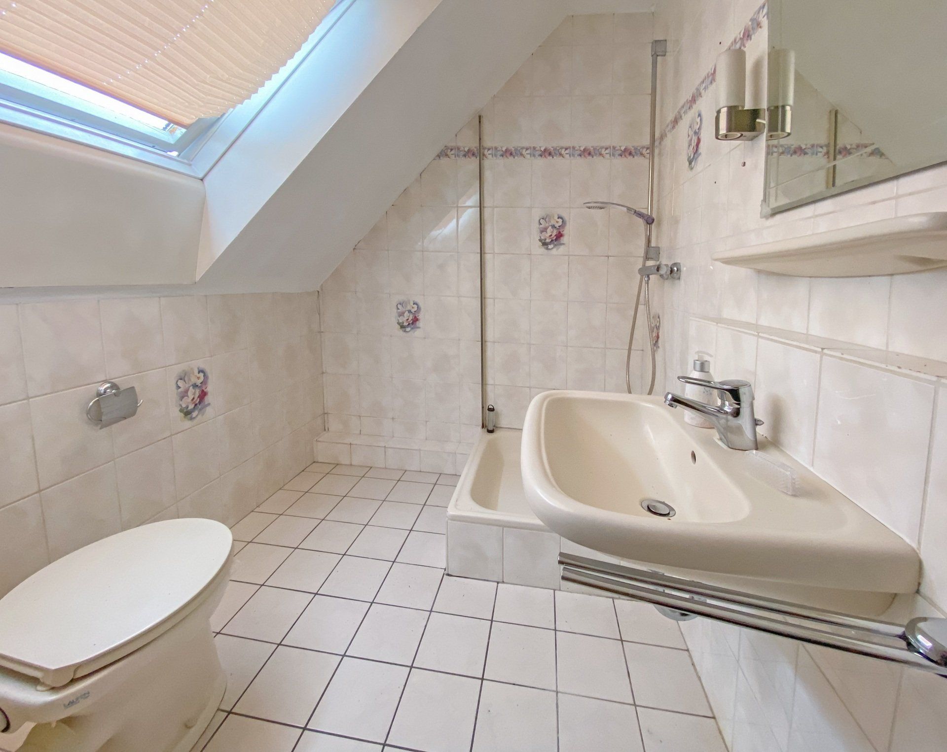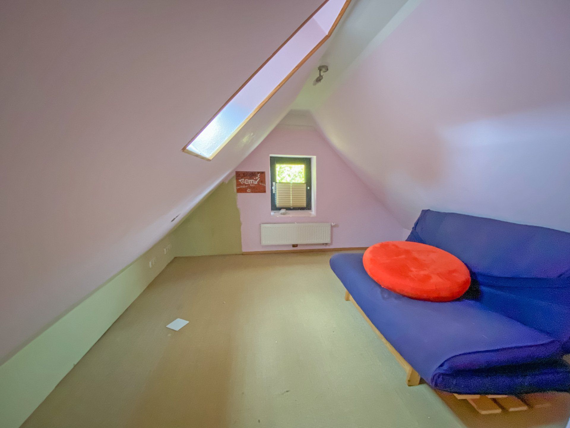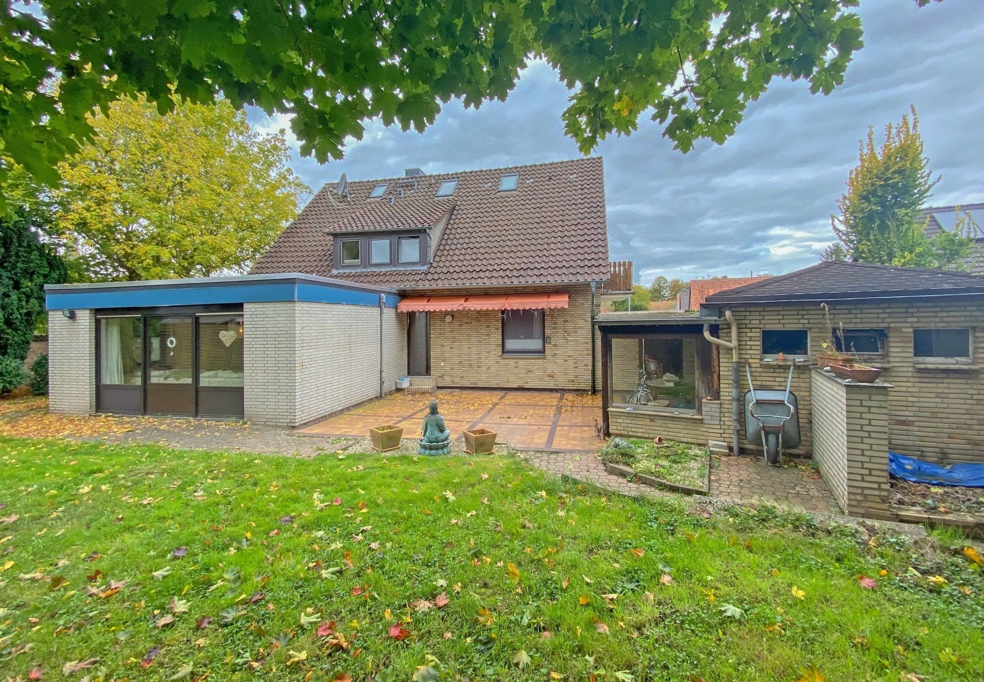 Bei dieser ansprechenden Immobilie, ohne Erbpachtgrundstück, handelt es sich um ein zweistöckiges Einfamilienhaus mit Vollkeller. Das Objekt steht ab sofort zum Verkauf. Zwei Badezimmer, ein separates Gäste-WC und sieben einladende Zimmer machen das Haus zu einem Wohlfühlort, auf den Sie sich jedes Mal freuen können. Im Erdgeschoss befindet sich ein Gäste-WC sowie ein vollwertiges Bad mit dem Charme der 70er. Von der offenen Küche gelangt man über das großzüge Esszimmer in den Anbau, in dem sich das gemütliche Wohnzimmer wiederfindet. Die drei Räume sind alle offen gestaltet und bilden somit das Herz des Hauses. Das Esszimmer führt einen auf eine der zwei Terrassen, wodurch den ganzen Tag mit einem kühlen Getränk die Sonne genossen werden kann, der Garten lädt zum verweilen ein. Des Weiteren befindet sich im Erdgeschoss noch ein Raum, der als Schlafzimmer oder Büro dienen kann. Im oberen Geschoss befinden sich 4 Schlafzimmer. Von allen Zimmern ist das Duschbad auf der Etage zügig zu erreichen. Der Dachboden wurde ausgebaut. Hier können ein kleines Büro und z. B. eine Couch Ecke eingerichtet werden. Die Holz-Velux-Fenster sorgen für das nötige Tageslicht. Ihnen stehen außerdem zwei Garagen für Ihr Auto und Gartenutensilien zur Verfügung.